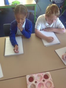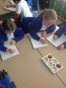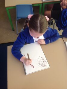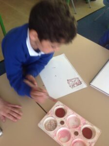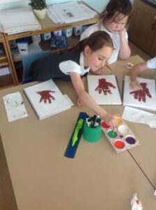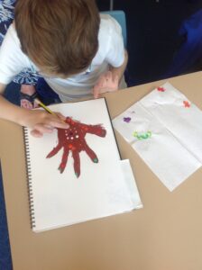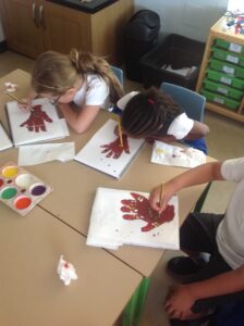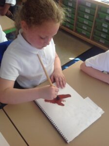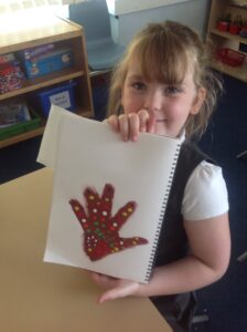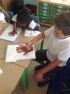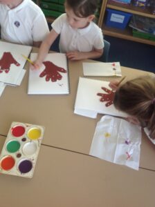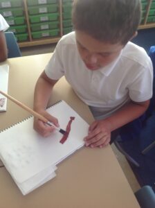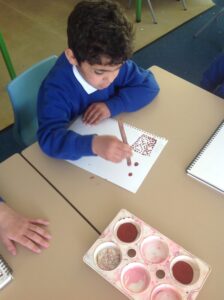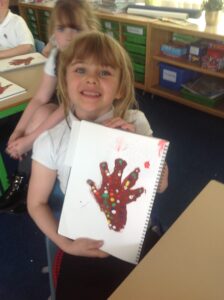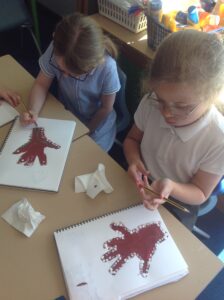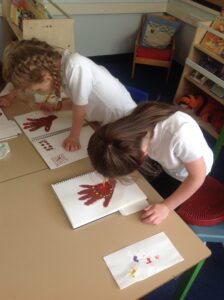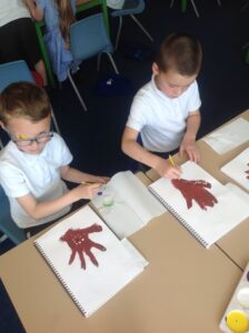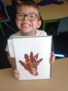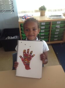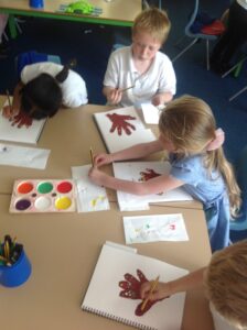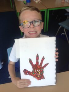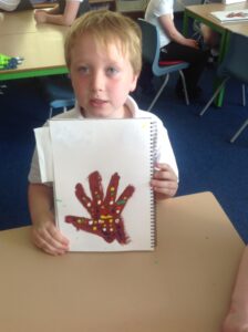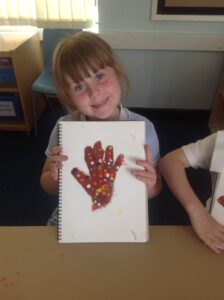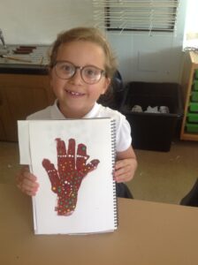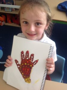 In Owls this week they have been learning all about Aboriginal painting using pointillism. First they used a variety of tools to look at the different outcomes such as cotton buds, sticks, pasta and pencils. They then decided how using a cotton bud was the best result. Then they drew around their hand and decorated with lots of earthy colours.