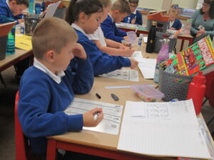 Each class has enjoyed learning more about what happens when we add and subtract larger numbers. They’ve even had time to supplement this learning with short bursts of shape, time and measurement work!
