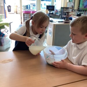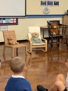 On Wednesday, we couldn’t believe it but Goldilocks knocked on our classroom doors! She came back to our school and told us all about why she went into the bears cottage without being invited, the children had lots of questions and made sure Goldilocks knew not to do that again. 3 of our children took on the role of the three bears as we acted out the story with Goldilocks and the children recounted what happened next. Look out for more information on BBC news!