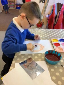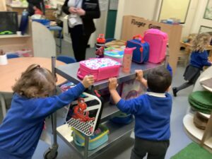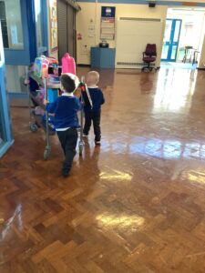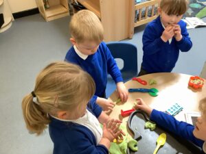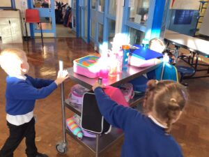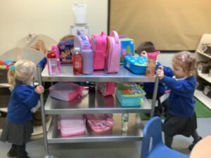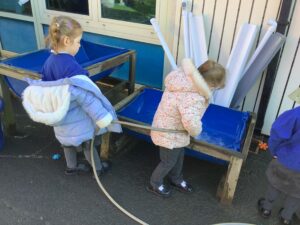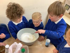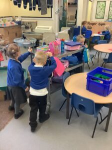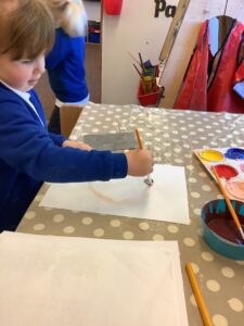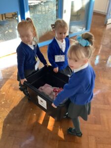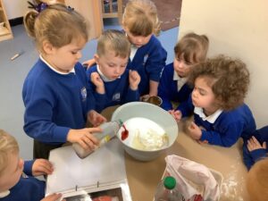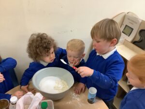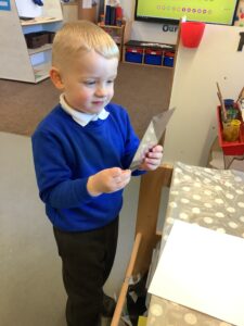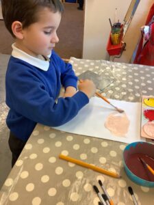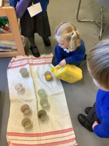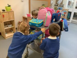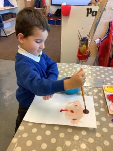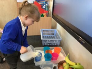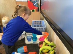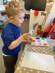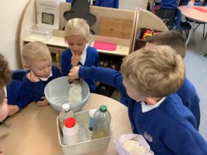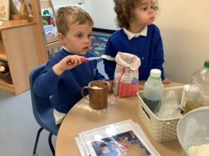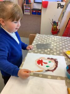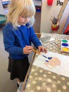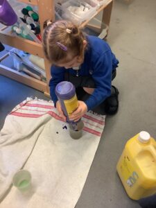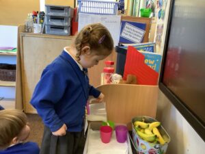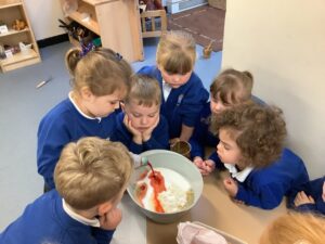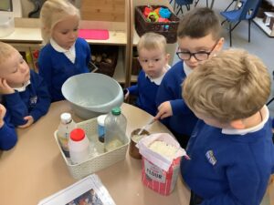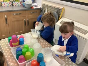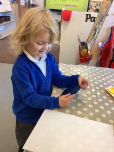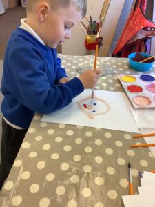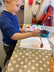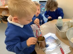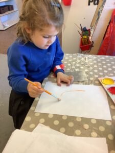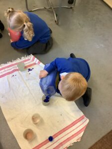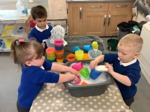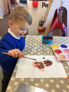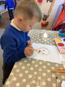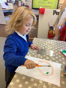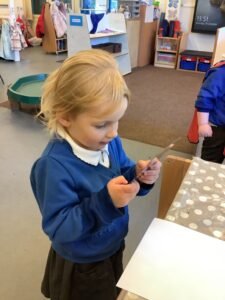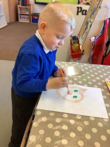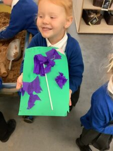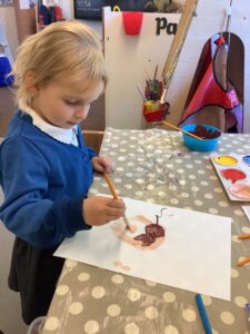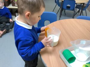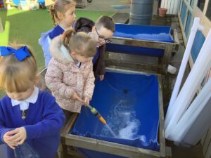 This week in nursery we have focused on ourselves and completed some beautiful self portrait paintings. We have continued to focus on maths, literacy, ICT, speaking and listening skills, independence, problem solving and physical development during ‘Special Helper’ activities. We are delighted to see how much the children’s confidence and skills have developed in such a short amount of time. During our Friday outdoor session we experimented with a variety of materials like; pasta, rice, water, dried spices. We put the materials into bottles to make shaker instruments to use on our outdoor stage. We also made a campsite/fire circle and sat around it to sing the songs that we have learned so far this half term.