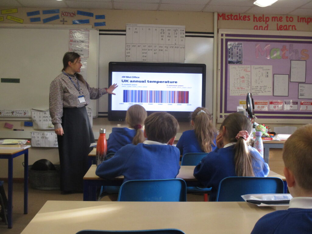 Prior to our visit to Beamish after half term, the children in year 5 were lucky enough to have a visitor from Beamish come into school today to give them an introduction into what they will be learning about. The children learnt about how the average temperature in the UK has differed looking right back to the 1800s and could see how we have experienced out hottest temperatures in the most recent years. The expert from Beamish then gave the children a brief history of why the amount of carbon dioxide in the atmosphere has increased, including looking at local coal mining. The children really enjoyed looking at some historical artefacts and pictures and have learnt a lot in preparation for their visit.