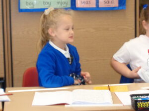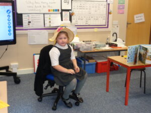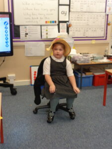 This week the Bees have been looking at the character’s in our story ‘The Scarecrow’s Wedding’. The children thought of open questions they could ask Harry, Reginald and Betty and some of them took turns to sit in the Hot Seat pretending to be the character. They took their roles very seriously!