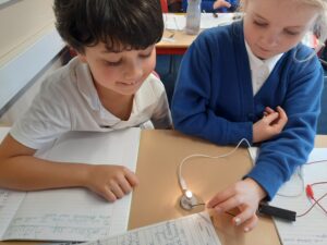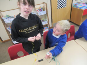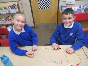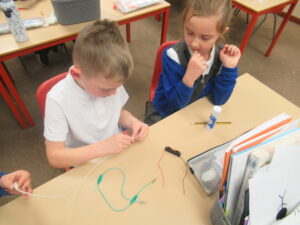 This week in Tulips, Bluebells and Snowdrops, we have been investigating electrical circuits. We had to see if we could wire a circuit up correctly in order to power a lightbulb.