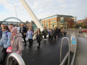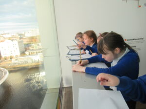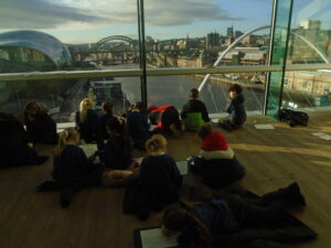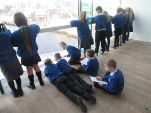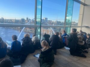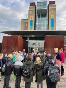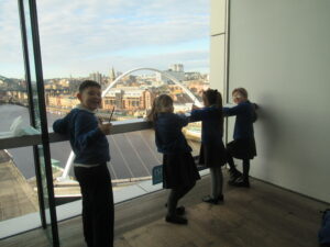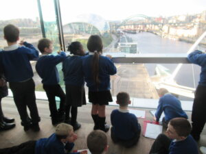 Yesterday, the children in years 3 and 4 went on a trip to The Baltic. We began the day by walking over the millennium bridge. We then headed inside where the three classes participated in different activities. The children were given a guided tour of the Land of Friends exhibition by Carolina Caycedo. They asked lots of amazing questions and explored how the different pieces of art made them feel and what it made them think of. The children also explored other exhibitions and enjoyed seeing the range of artwork displayed, including sculptures, photographs, prints, writing, speaking and paintings. During the day the children were able to move between the different floors of The Baltic using the glass lifts, which they loved! The children used The Baltic’s viewing deck to complete some observational drawings of the bridges and other landmarks they could see. The children named the different bridges they could see and the features on them. The children’s behaviour throughout the day was fantastic and they had an amazing day. Take a look at some photographs of each class below.