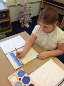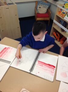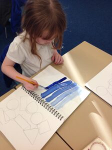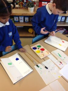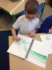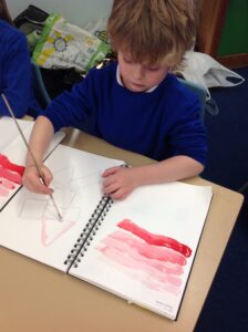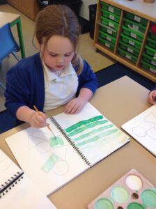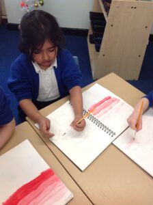 This half term in art Owls have been learning about the artist Paul Klee and how a lot of his work is abstract. They enjoyed taking their pencil for a walk just like his quote ‘A line is a dot that we take for a walk.” They then looked at his painting ‘Table of Colour’ focusing on 2D shapes (squares) and colour. Next they explored shades of colours and how certain colours made them feel. Finally they mixed paint to make different shades of one colour.