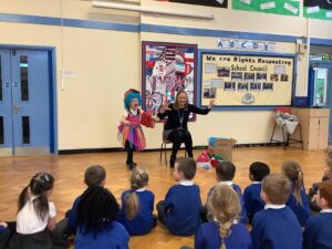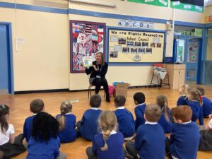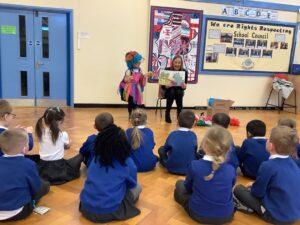 Maria from Gateshead Library service came to launch this years Book Start with this years Reception children, she read the children two stories all about monsters. The stories were called ‘Don’t Call Me Sweet!’ by Smriti Prasadam and ‘We’re Going to Find a Monster’ by Malorie Blackman.