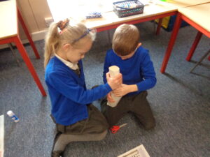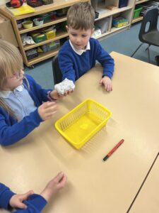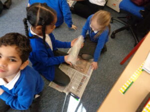We all know the story of Humpty Dumpty. Today in KS1 the children were given a challenge. In groups they were given a different material to protect an egg when dropped from a one metre height. We talked about the properties of the materials before predicting which material would work the best as protection. The children had lots of ideas for ways to use the materials effectively when wrapping the egg.