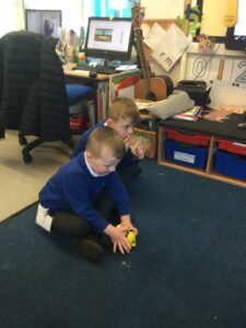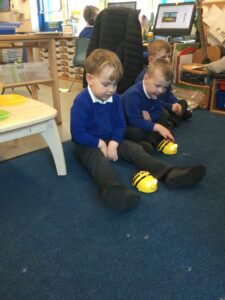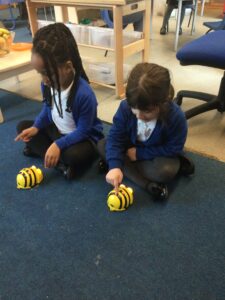 As part of Technology, in Understanding the World, the children have been learning how to control Beebots. They have explored how to use the controls to move forwards and backwards. They then tried to work out how many moves to get get to a given point. It was trickier than they first thought. Next week the are looking forward to debugging the Beebots when things go wrong.