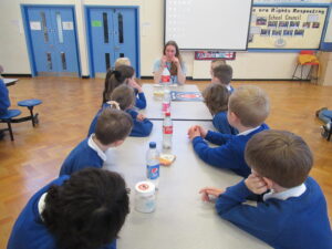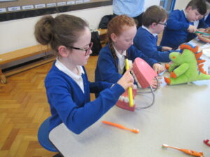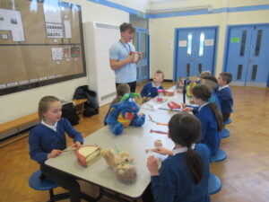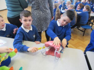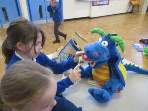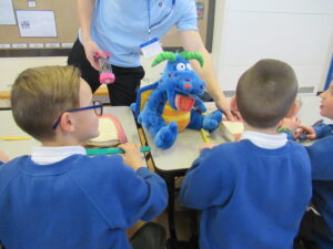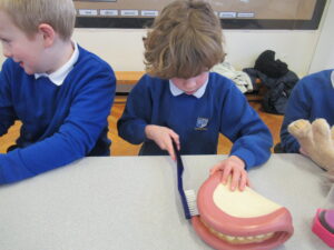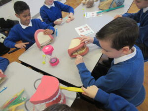 Today, the children in LKS2 were visited by three dentistry students from Newcastle University. The children learned all about oral hygiene. One one station, the children learned all about brushing their teeth. They learned we should brush for two minutes using circular movements. Using fake teeth, the children then practiced their brushing technique. At another station the children learned how much sugar is in different foods/drink and the effect too much sugar can have on their teeth. Finally, the children learned about the different tools used by dentists. They even got to dress up as a dentist! The children were great listeners and asked lots of questions. Well done LKS2!