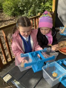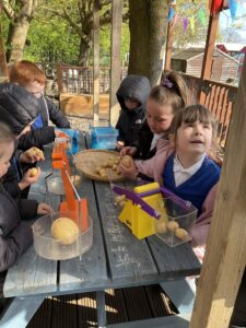 The children have explored where fruit and vegetables come from and why we need to eat fruit and vegetables as part of a healthy diet. In Maths this week the children have used the balance scales to investigate light and heavy using the the fruit and vegetables. The children have continued to water and look after the plants in our outdoor area.