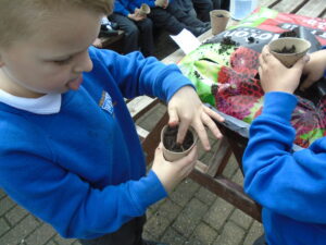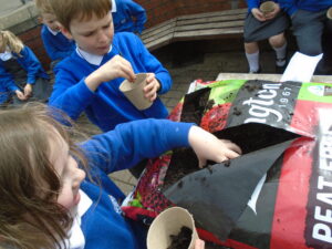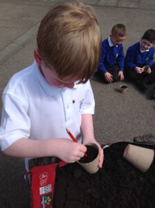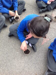 Then, we planted our own sunflower seed using compost and small plant pots. We can’t wait to watch them grow!