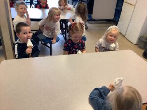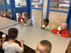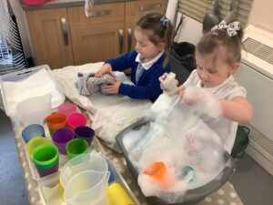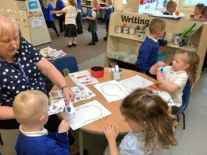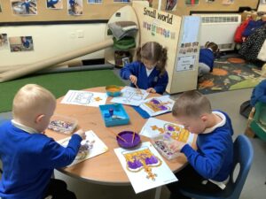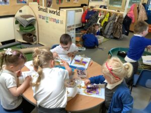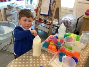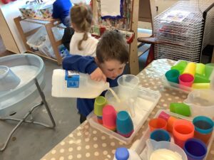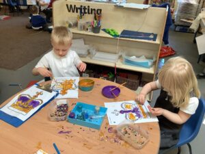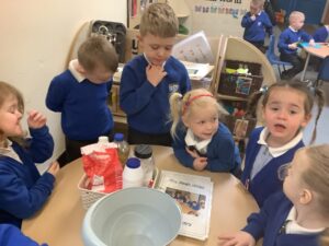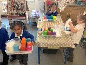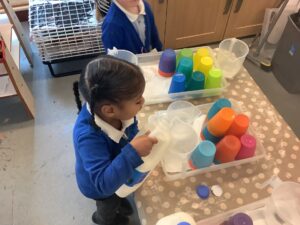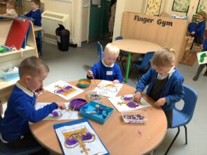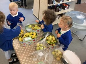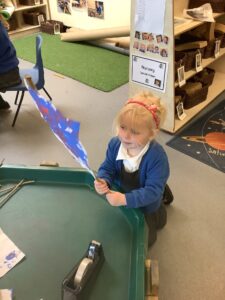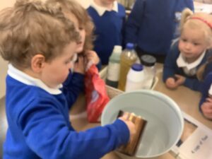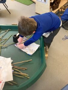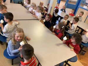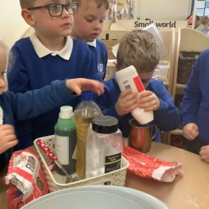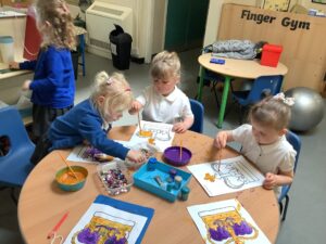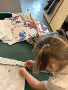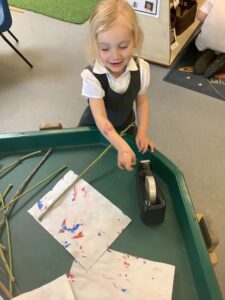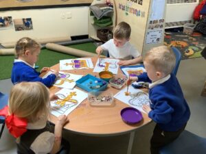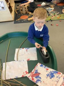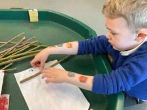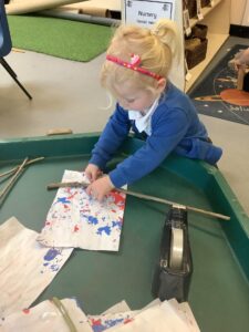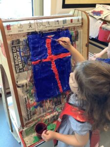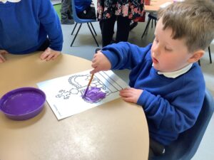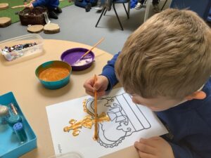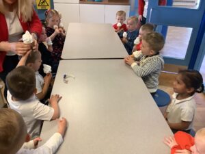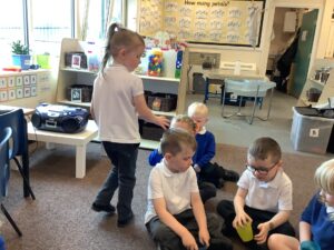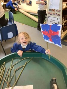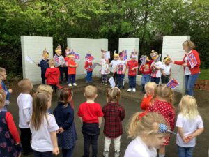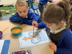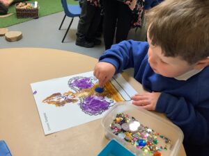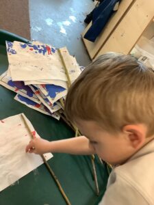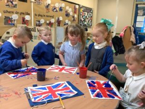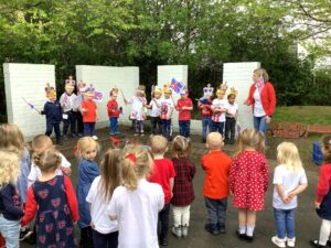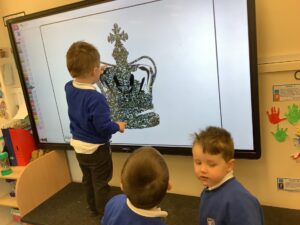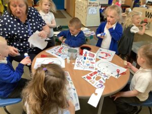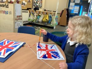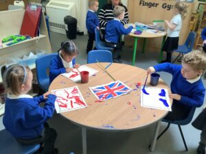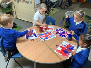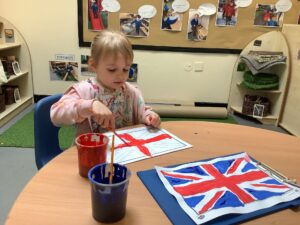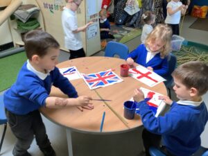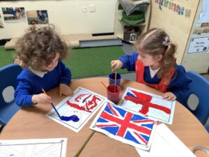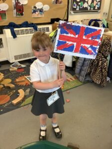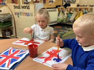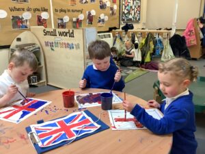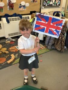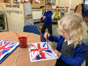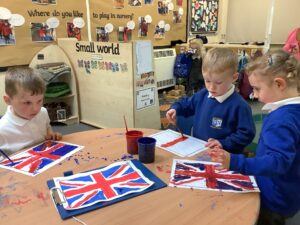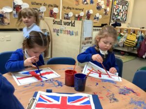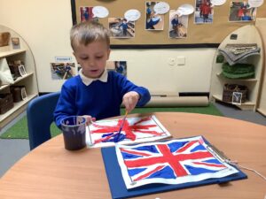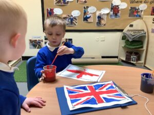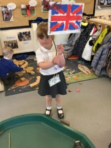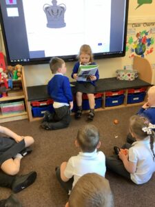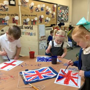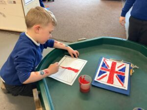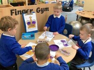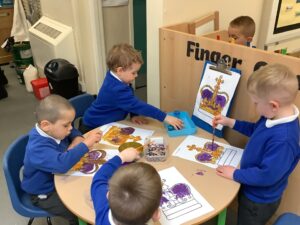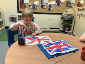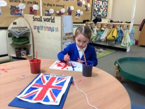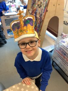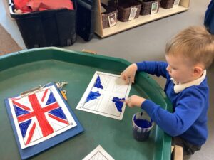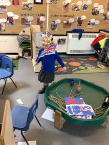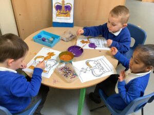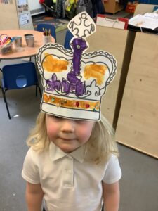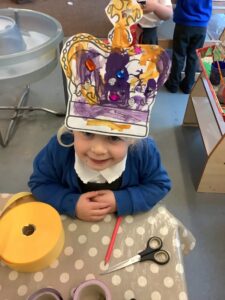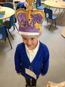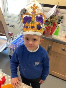 We have had a brilliant week preparing for and celebrating the King Charles’ coronation, incorporating maths, speaking and listening and understanding the world within our activities. We found out lots of facts about King Charles and what will happen during his coronation. As we watch the coronation on the television tomorrow, we are going to look out for the coronation crown, which is called St Edward’s Crown (we replicated this with gold and purple paint and fake sequins), The Coronation Chair, The Sovereign’s Sceptres and The Sovereign’s Orb. We painted some fantastic Union Jack flags and attached a willow stick so that we could hold it during our parade. We learned some of the words and signs to The National Anthem, ate an ice cream which was delivered by an ice cream van and produced a crown on the interactive white board. In the construction area we build structures to represent Buckingham Palace using wooden building blocks. In addition to our royal celebrations, we made our own playdough, carried out special helper duties and continued to put compostable materials into our compost bin.