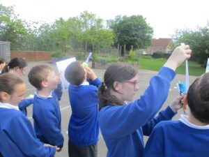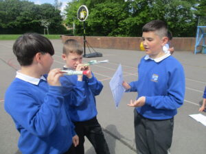 Following on from last week, Year 6 carried out their rocket launch investigations. They looked at how the angle of launch effected the distance travelled. Year 6 also had to thick about fair test as well as which variables had to be considered too.