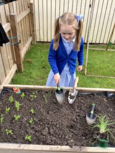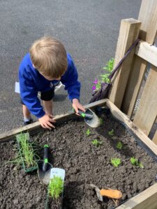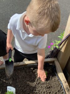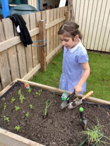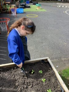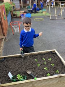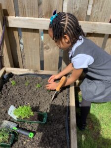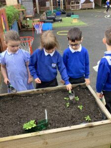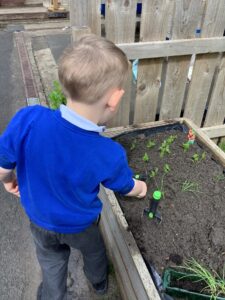This week, the children have been continuing to look after the garden in the outdoor area. After speaking about the importance of a healthy diet following the story ‘The Colourful Present’ the children prepared the planters and planted salad vegetables that we will taste in a couple of weeks time. Through the week, the children investigated and researched on the computer where fruit and vegetables come from, they had lots of questions about the journey the fruit and vegetables went on to get to the supermarket.