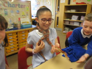 Throughout science week, the children enjoyed an exotic animal workshop with our expert visitor Angela from ‘Angela’s Ark’.