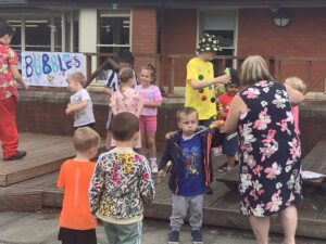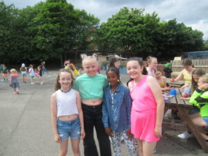 Today was the return of the annual Summer Festival at Windy Nook. We decided on a 90s theme and all of the children really dressed for the occasion. Year 6 led the event, painting banners and manning all of the different stations on offer: bubbles; juice and biscuits; face and nail painting; and penalty shootout to name but a few. All the children from nursery to year 6 participated in the event and it was a huge success. Everyone danced their socks off to some 90s classics and all in all had a fantastic time. Thank you to parents and carers for your continued support in helping to raise money for our school with such events.