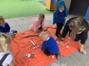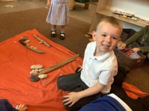 Nursey have been artists again today and made some fantastic sculptures and patterns using our beach treasure. We made pictures of flowers, faces, tall pebble structures and driftwood collages to name a few.