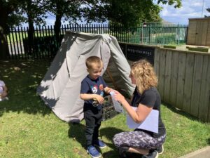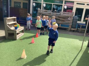 Nursey had a super Sports Day today! They took park in a variety of races which included an obstacle race, running race, balancing race and a basket ball activity. The children showed determination throughout the activities and encouraged their fiends when challenges occurred which was lovely to observe.