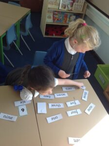 Owls have been enjoying working with their partner in Maths to read number names and match to their numeral.