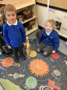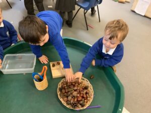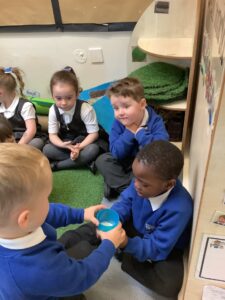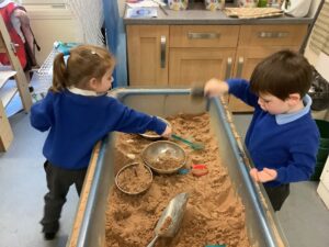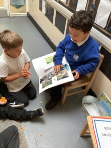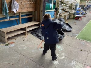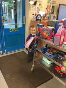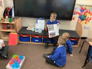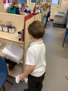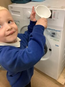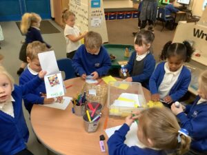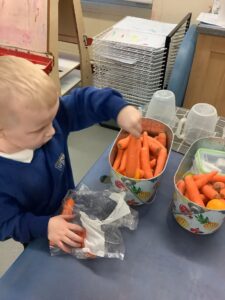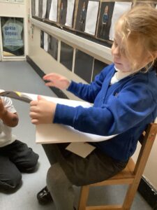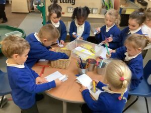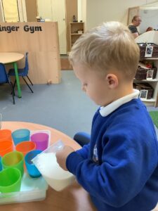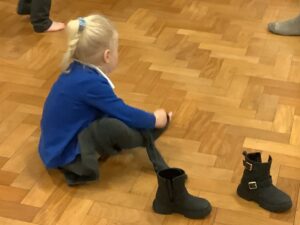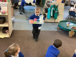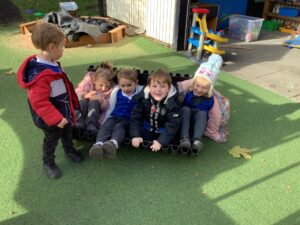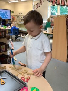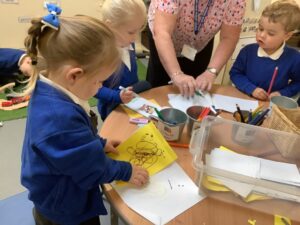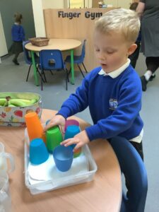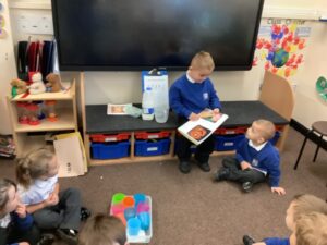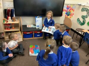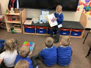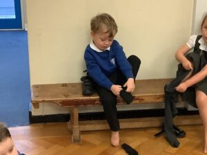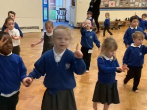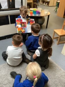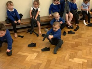 This week in nursery we have continued to read the story of Elmer. Some us made an Elmer booklet using pictures from the book to retell the story. We wrote our name on the front cover of our books to show we were the author and we wrote numbers on each page to show the page number of the book. We also made paintings, drawings and IWB pictures of elephants. On Friday we opted to stay indoors due to Storm Babet. We had a wonderful time in our school hall participating in some action songs. Most of us made a really good attempt at taking off and putting on our own socks and shoes. Some of us did it completely independently.