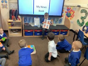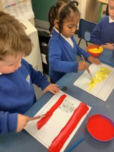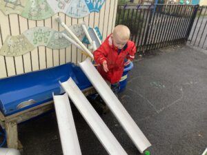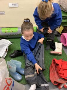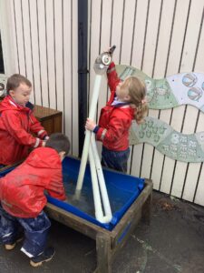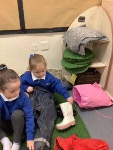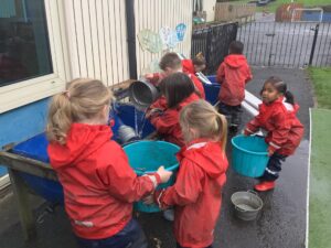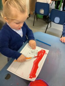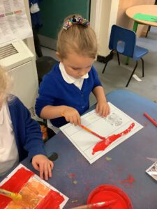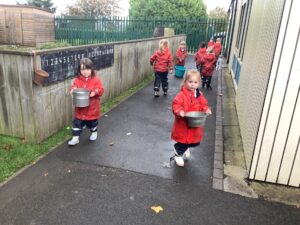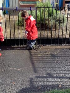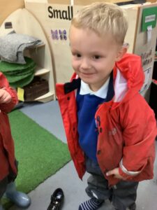 This week we have read the story of Elmer. We discussed diversity and having similarities and differences by linking the premise of the story and the fact that we are all different. We participated in Elmer themed activities by creating Elmer/elephant pictures, using the interactive white board, pencil control tasks and creating some stick puppets as well as masks. On Thursday we participated in National Day of Spain and learned how to say hello and goodbye in Spanish as well as making a Spanish flag. During our Friday outdoor session we worked on our resilience and self-help skills as we dressed ourselves in water-proof clothing and wellies. We had a wonderful time outdoors: raking leaves to take to the school compost heap, digging in our digging area, experimenting with tubes and funnels in the water area, creating in the mud kitchen and using the large construction equipment to build structures.