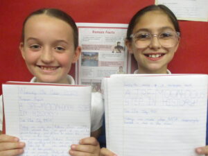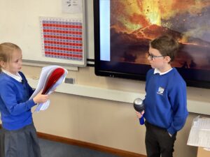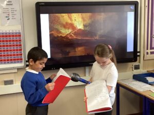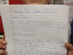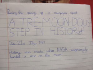 Years 3 and 4 have been writing newspaper reports, based on a range of subjects – including the eruption of Mount Vesuvius in Pompeii, August AD79, as well as the Moon landings of July 1969.