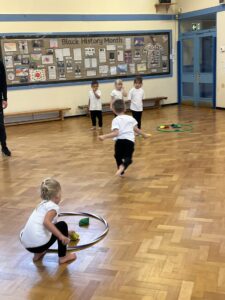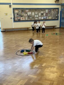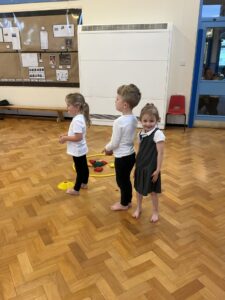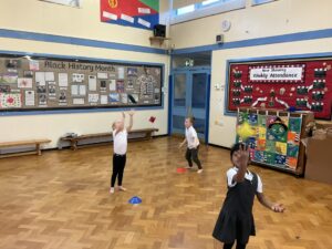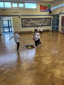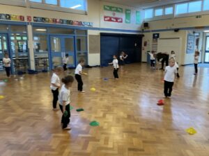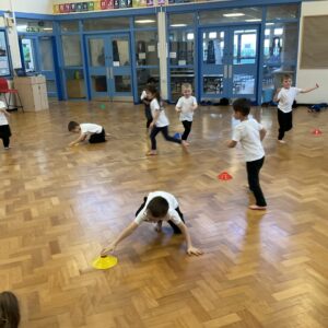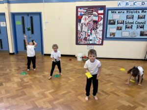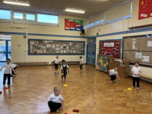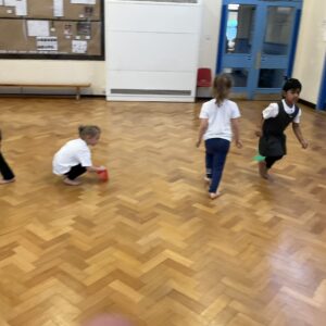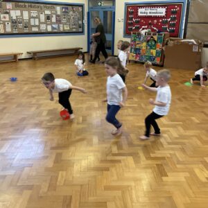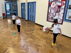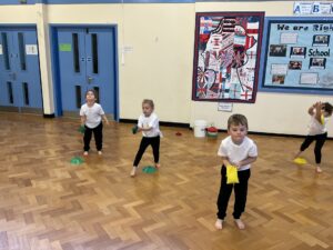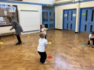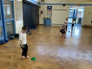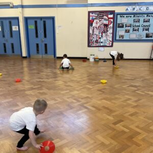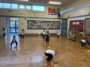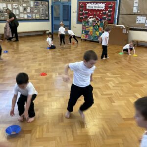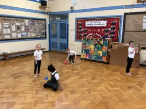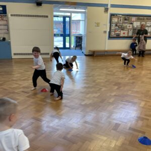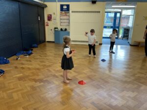 In PE this week, the Ladybirds and Dragonflies have been practicing different ways of moving around the hall. They walked, jogged, jumped, ran and crawled in lots of different directions. After this, the children practiced throwing the beanbags up in front of them and letting them fall first and then moved on to attempting to catch them. The children were really concentrating with this activity and there were plenty of successful catches! This week, the children took part in a team game, the children were great at looking and waiting for their turn.