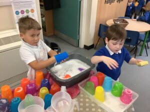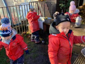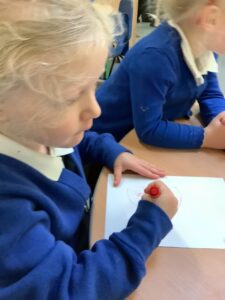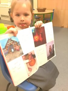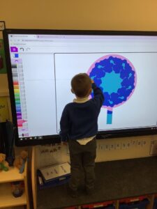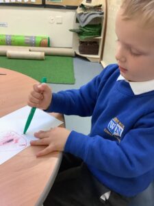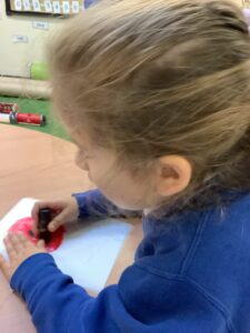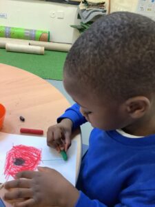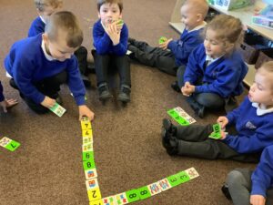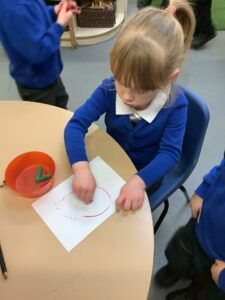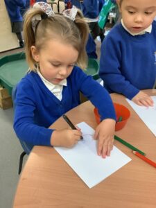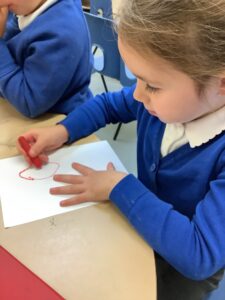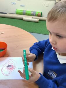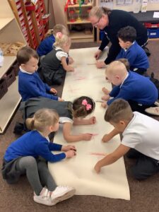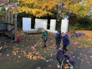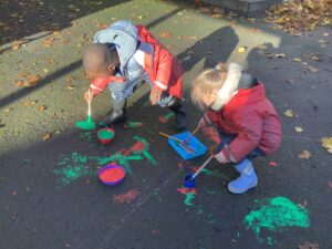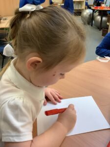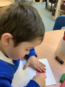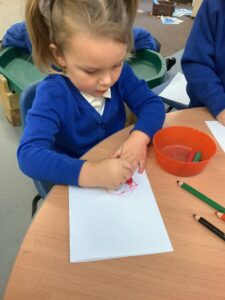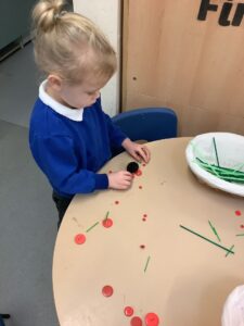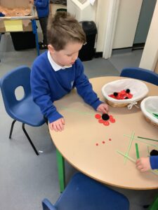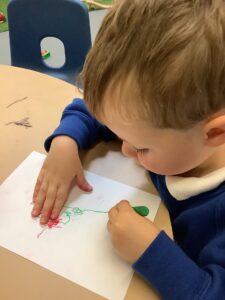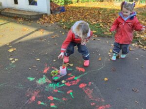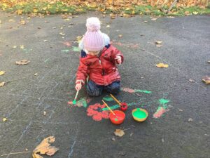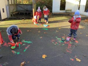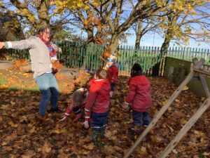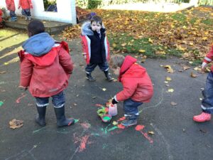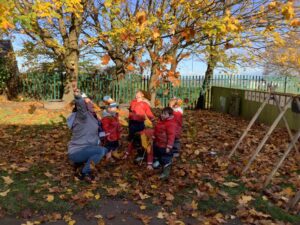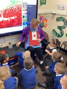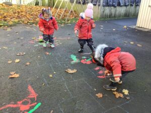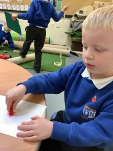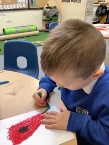 This week in nursery we have focussed on Remembrance Day. We discussed why we wear poppy badges in the week leading up to Remembrance Day and we created poppies in many different ways. We painted, drew, used the interactive white board, made collages and used some red play dough to make some beautiful poppies. On Friday we also participated in a minute silence. During our maths sessions this week we learned how to play dominoes. We focussed on matching both pictures and numbers and demonstrated some excellent turn taking and sharing skills. We focussed on speaking and listening during our literacy sessions and spoke about where we liked to play while in nursery and why? We also participated in Squiggle While You Wiggle to help us improve our gross motor skills and pre writing skills. During our outdoor Friday session we painted on the ground using red, green and black paint to create a field of poppies. We also had fun with the beautiful Autumn leaves which have fallen from the trees in our nursery garden.
