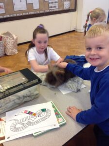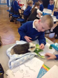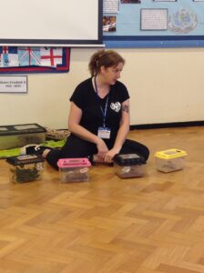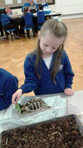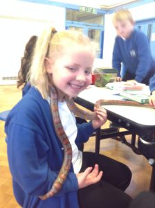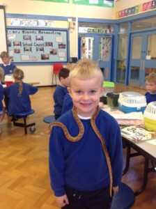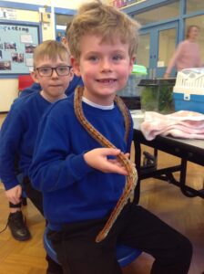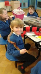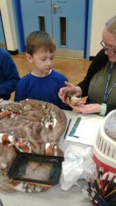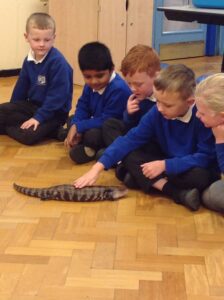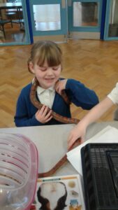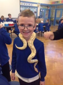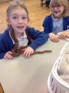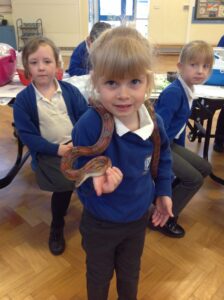 This half term, KS1 have been learning about animals. We learned that scientists group animals based on different things. For example; what they eat, their body parts, their habitat etc. To help us with this topic, we had a visit from Angela’s Ark. Angela brought animals for us to look at, touch, and hold. She was very informative and we learned lots of interesting facts.