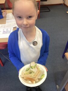 This week, Bluebells, Tulips and Snowdrops have been making sandwiches. The children started off by testing prototypes and practising skills such as slicing, grating, tearing and chopping. They sampled different sandwiches and then decided on the ingredients they would like to include in their own. We also discussed the importance of food hygiene identified the need for our sandwiches to contain healthy ingredients with a good mix of food groups. Each child then made their sandwich and every adult was impressed by their effort, skill and enthusiasm.