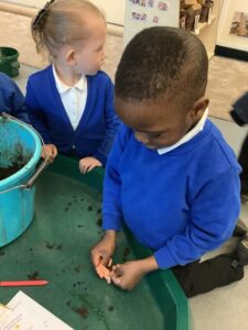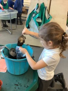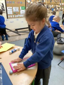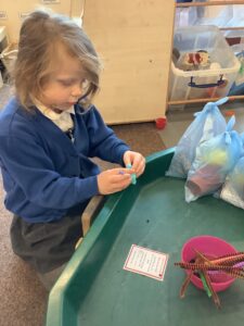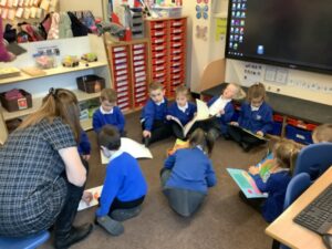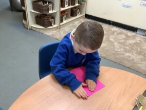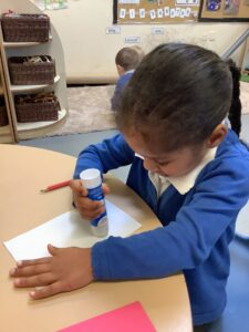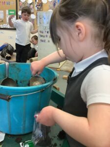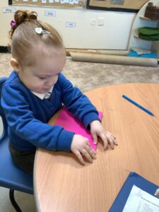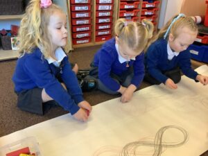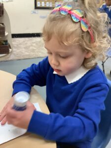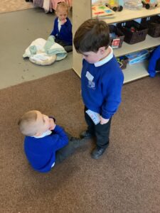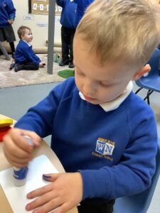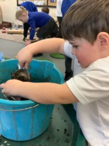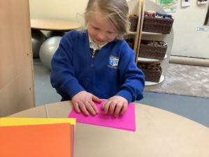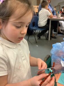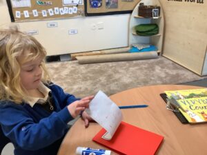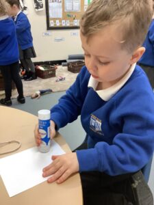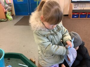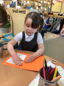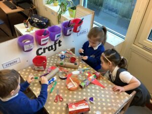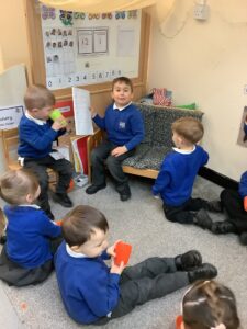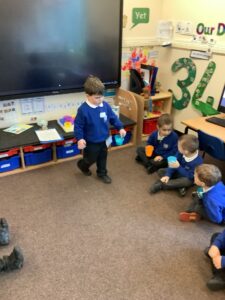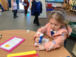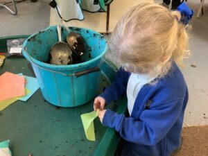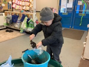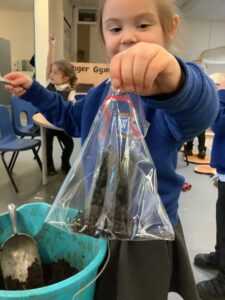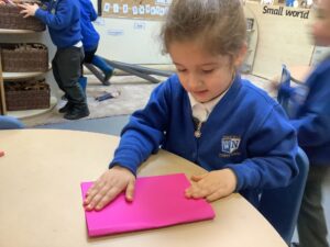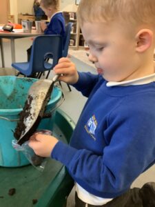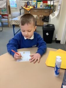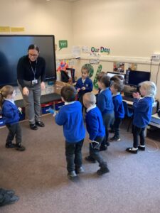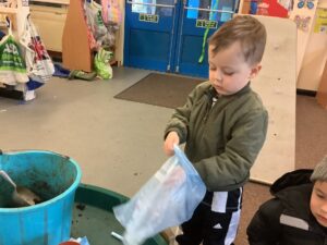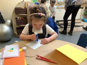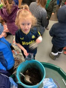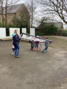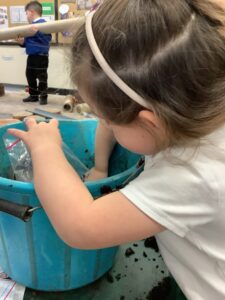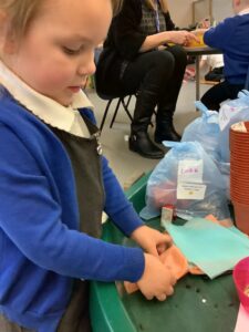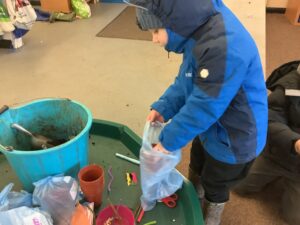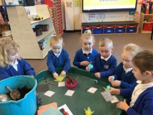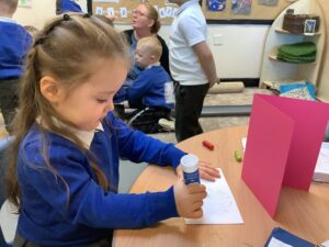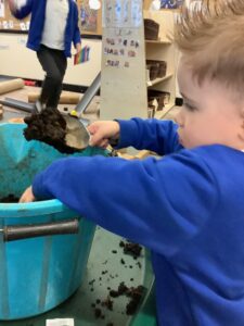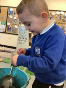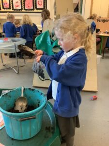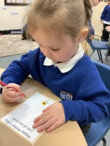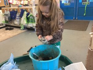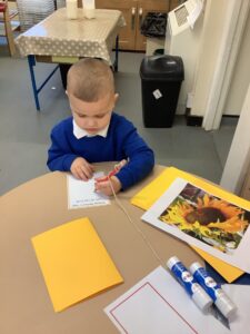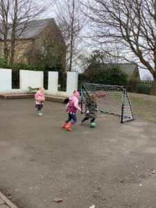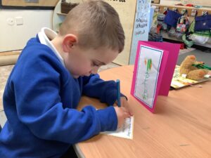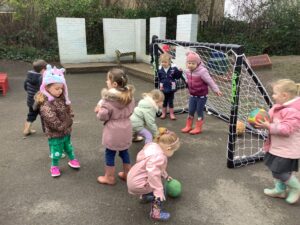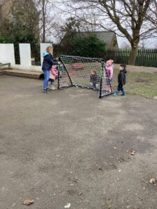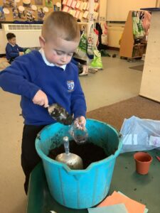 We have made links to most of the areas of the curriculum in nursery this week during our Mother’s Day activities. We made a gift bag for our mams consisting of home made compost, a plant pot, and a ‘special’ seed which we carefully wrapped up and secured with a pipe cleaner. We are looking forward to helping our mams plant the seed and care for it. Staff are looking forward to hearing/seeing updates of any growth that occurs! As we prepared our gift bags we counted how many scoops of compost we used as we put it into a bag. We also made links to Science Week which commences today, discussing the fact that some of us have been collecting and adding compostable materials for that last year and putting it in our compost bin and how it has now decomposed and can now be now used. We completed our Mother’s Day cards. We folded a piece of card and attached the beautiful daffodil drawings that we made last week to the front of the card. We then glued a greeting insert into the inside of our card and wrote on our name. During our maths sessions we made repeating patterns using our voices, bodies and instruments. We participated in our weekly Squiggle While You Wiggle session. We produced some beautiful flower and plant pictures using the interactive white board. On Thursday we enjoyed lots of stories for World Book Day. WHS kindly donated some books for us to keep and take home which our Special Helpers collected for us from the other end of our school. On Friday we practiced football skills for Let Girls Play Day. We assembled a brand new football goal during the morning and then practised scoring goals in it during the afternoon.