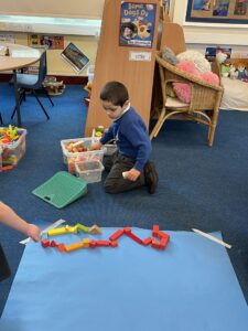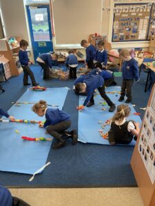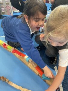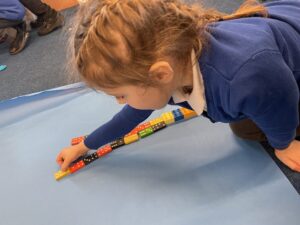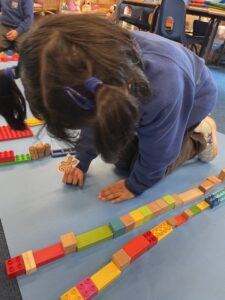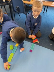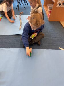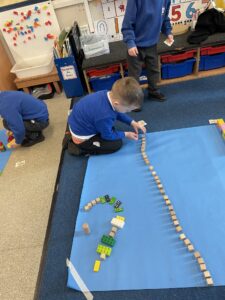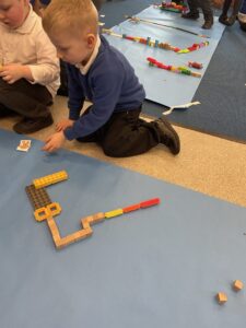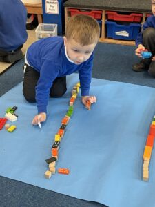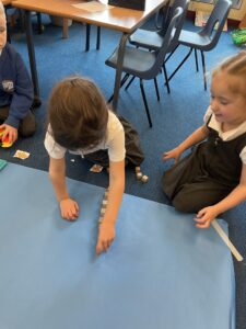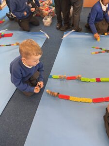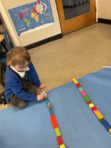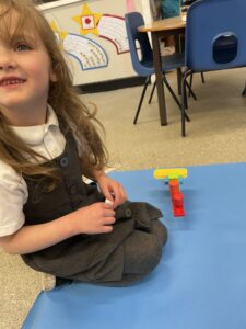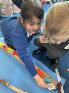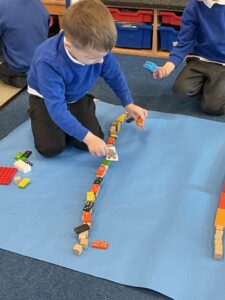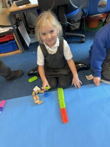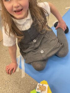 This week, the Ladybirds and Dragonflies have been exploring the story of ‘The Gingerbread Man’. On Monday, the children had a STEM activity to investigate, building a bridge for the gingerbread man to get over the river away from the fox. The children enjoyed using different resources and then test out their bridge with their own little gingerbread man. There were many different shapes, lengths and ideas, the children were using lots of fantastic vocabulary such as, longer, shorter, taller and stronger.