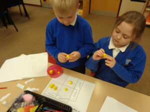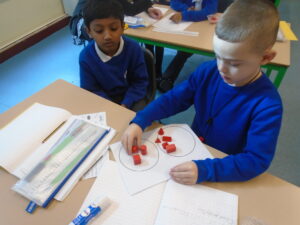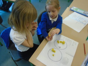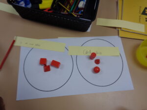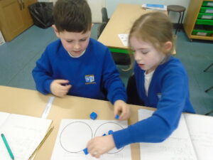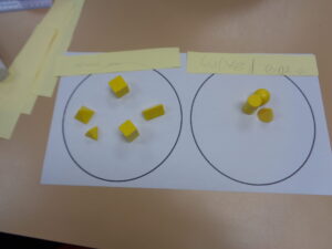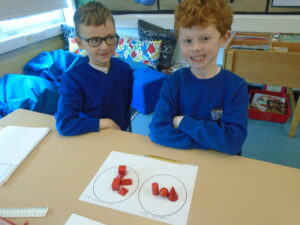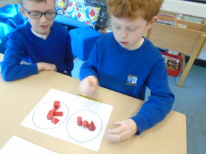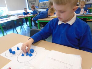 Year 2 have been busy looking at properties of 3D shapes, using them to sort the shapes in different ways. We have been using Venn diagrams and Carroll diagrams to think about edges, vertices and surfaces of shapes.
