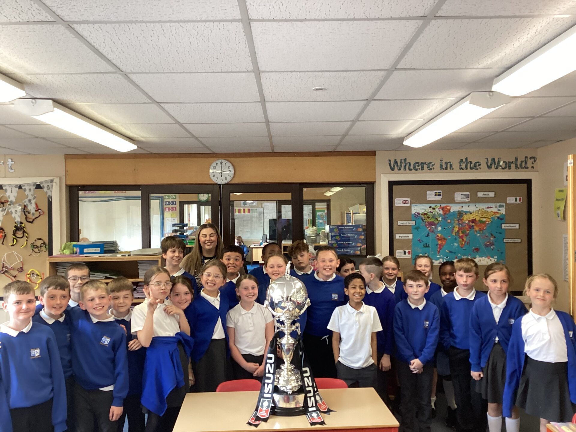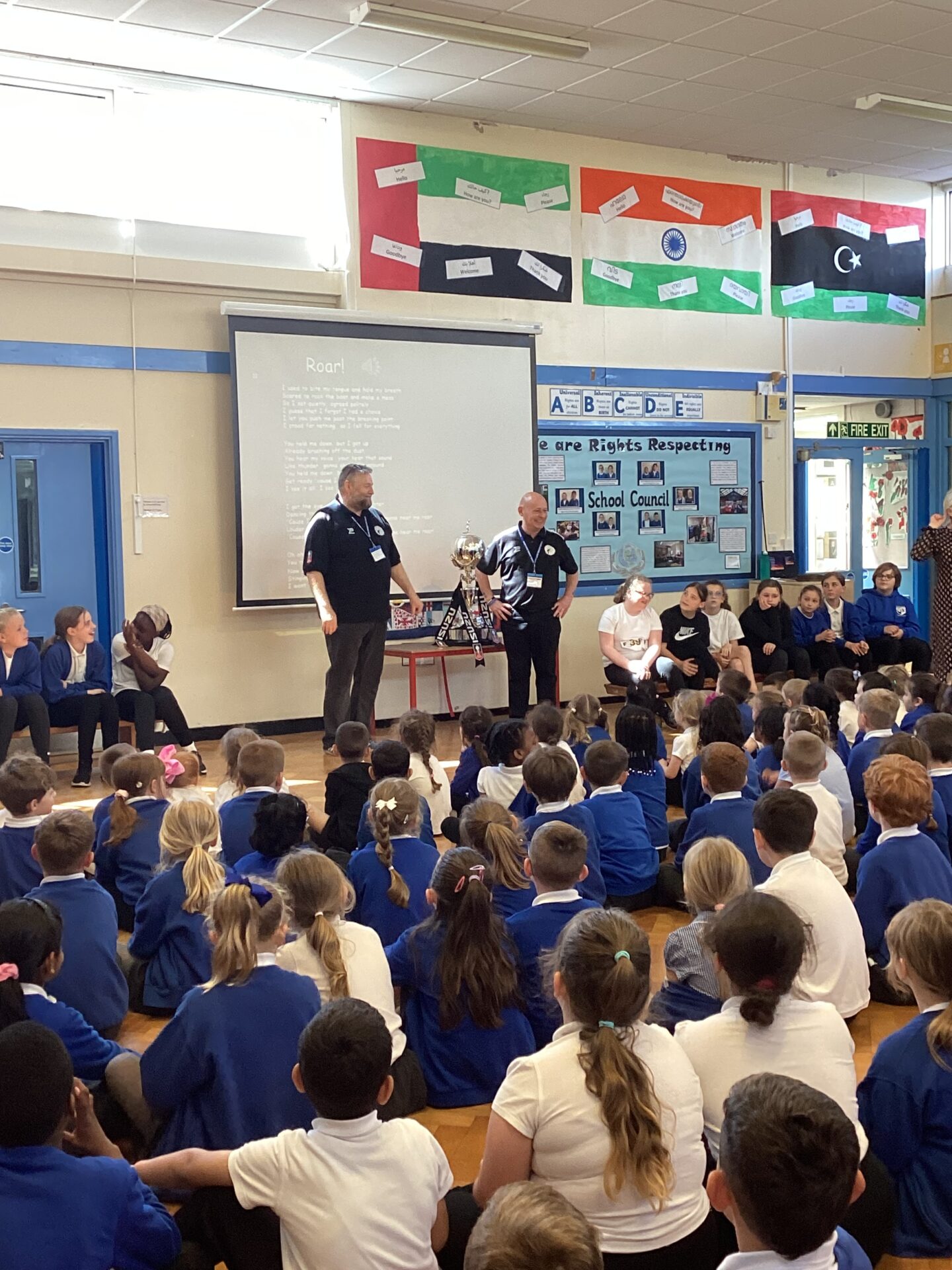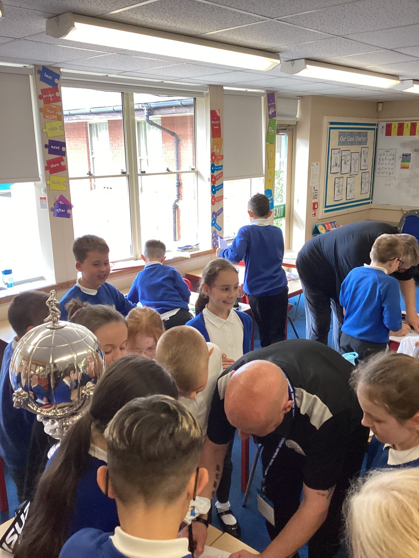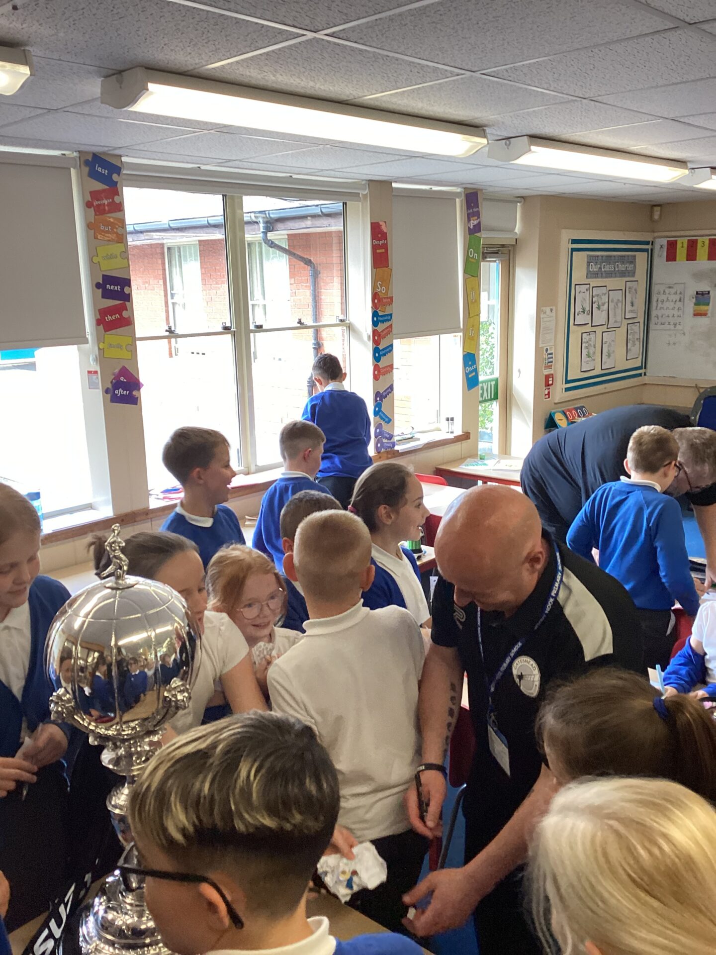 We would just like to say a huge thank you to Mr Tony Carter and Mr Bernard Williams from Gateshead FC for bringing the FA Trophy in Windy Nook today. The children….and staff were so excited to see the Trophy in real-life. They both described how fantastic it was to be at Wembley and as winners too.