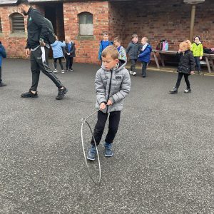 Finally we went back in time to a school. We loved playing outside in the playground and learned some new skills.