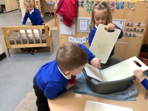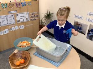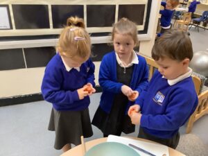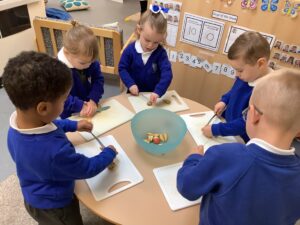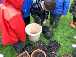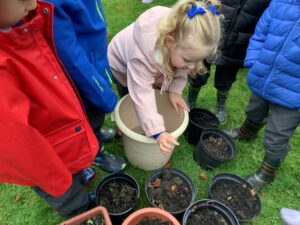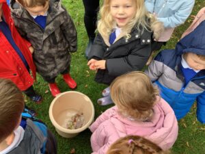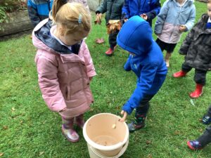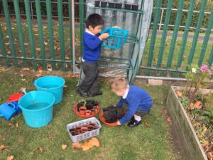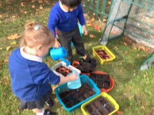 As part of the WWF Happy By Nature initiative, which teaches the importance of forests, we found acorns and planted them in pots to see if we can grow our own trees! We tested the acorns to see if they were healthy by dropping them into water. We didn’t plant the acorns that floated, only the ones that sank. We also looked after the spinach seeds we planted last week, carefully moving them from the greenhouse and giving them some water.