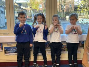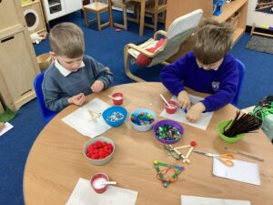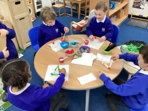 This week in Reception, our young creators have been hard at work transforming simple craft sticks into festive masterpieces! From sparkling Christmas trees to cheerful Rudolph decorations. They carefully added unique touches to make each piece special. These beautiful decorations will be available at our school fayre for just £1 – a perfect way to support our budding artists!
