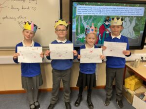 Lower Key Stage 2 children read the story of The Monkey King (Buddhism) and then created leader’s crowns and mindmaps to explain what a good leader is.