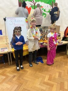 We found out all about Kirtida’s life, as well as listening to the story of Rama and Sita and getting dressed up. Kirtida also sang and played her drum, some of us were lucky enough to have a turn ourselves!