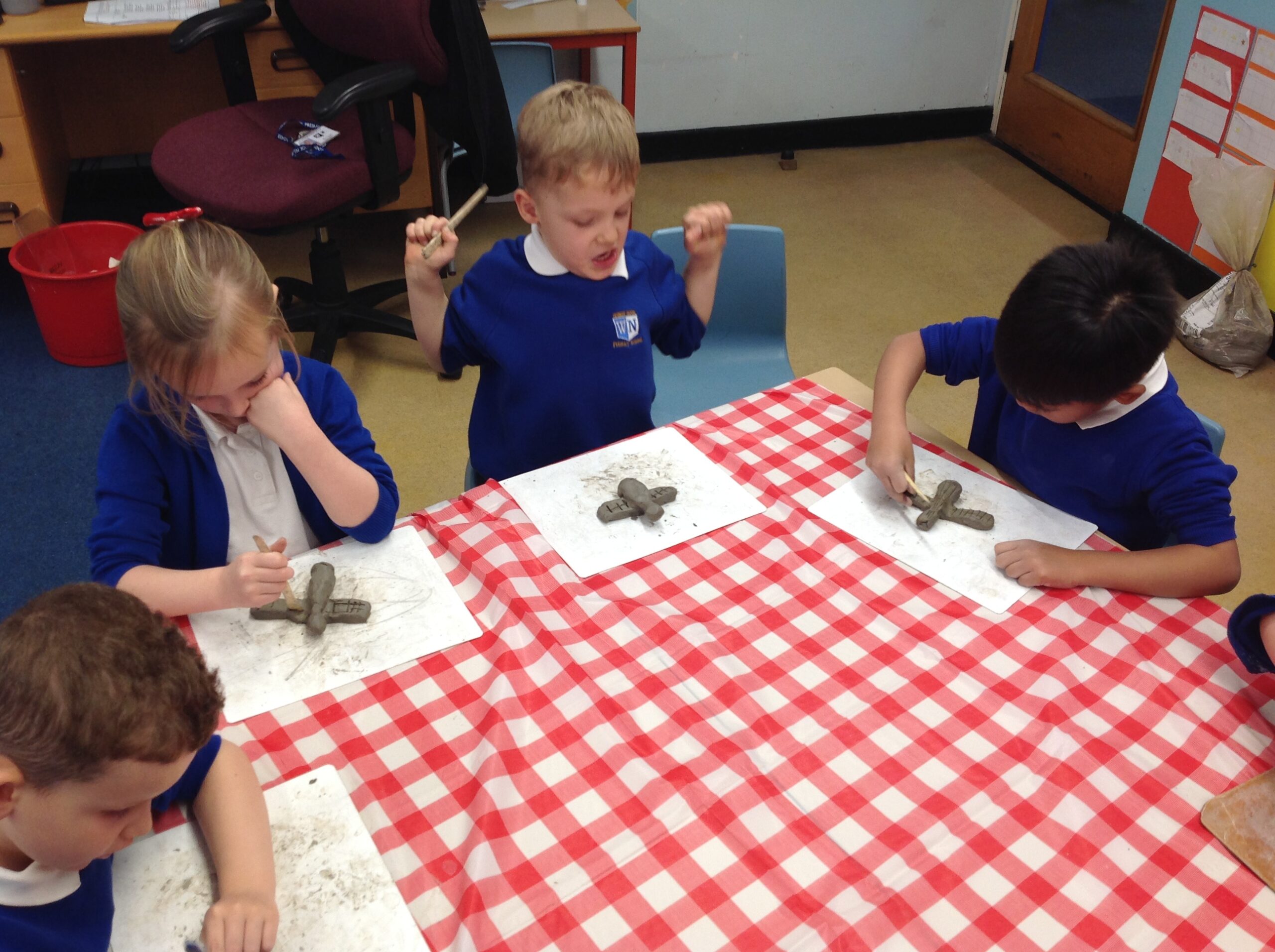 This week in Key Stage One, children have been taking inspiration from Antony Gormley’s Angel of the North to create their own masterpiece. The children had to roll, shape join the clay before adding intricate details using a range of tools! We can’t wait to paint them in the coming weeks.