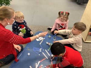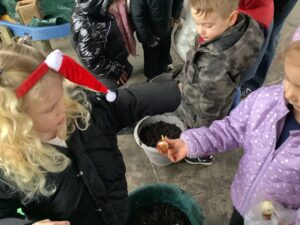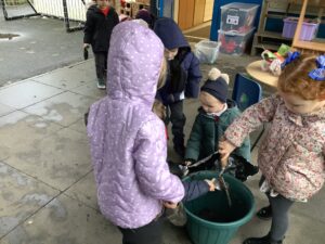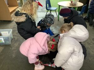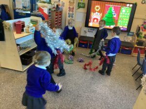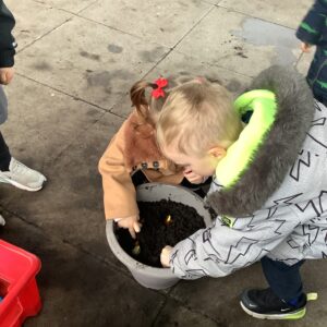 We also watched Reception perform their dress rehearsal for the Nativity – it was absolutely brilliant! In maths, we explored movement patterns by counting claps, stamps, and other actions. At the craft table, we practiced attaching junk materials with masking tape, and some of us even managed to create small vehicles. For phonological awareness, we worked on rhyming words through fun games and activities. During outdoor time, we planted tulip bulbs – we can’t wait to see them bloom in spring! On Friday, we loved wearing our Christmas jumpers to nursery and sharing the festive spirit.