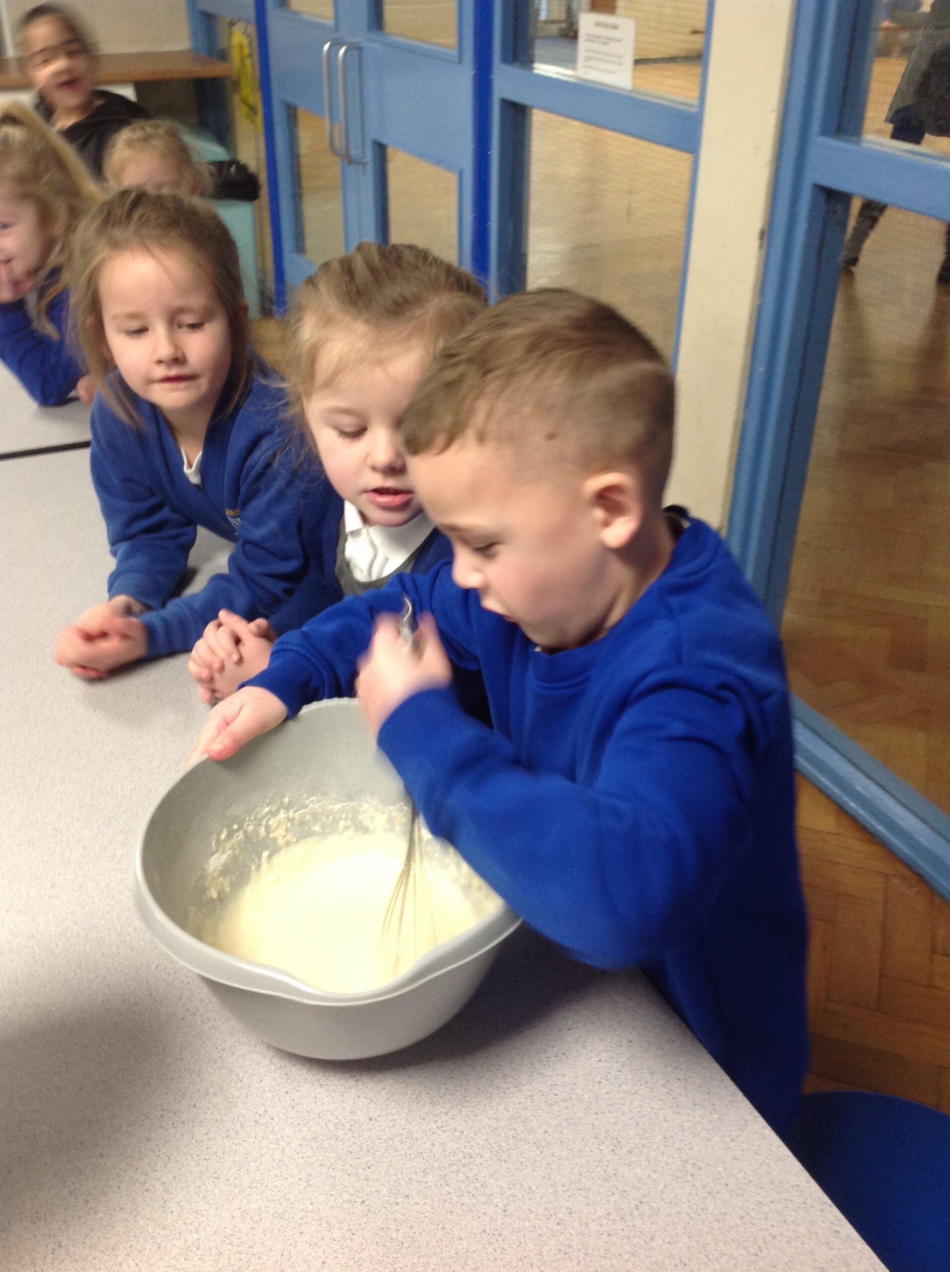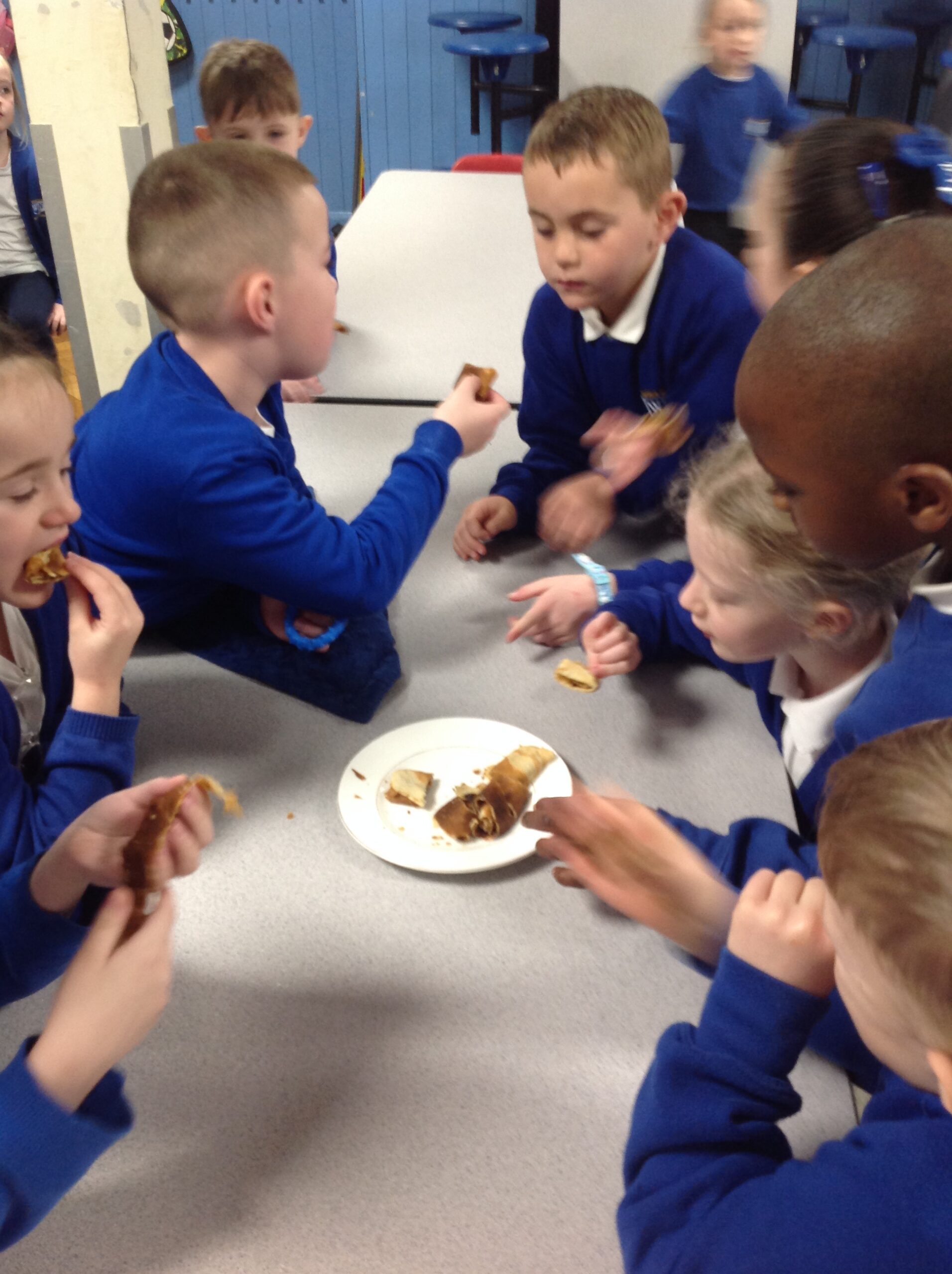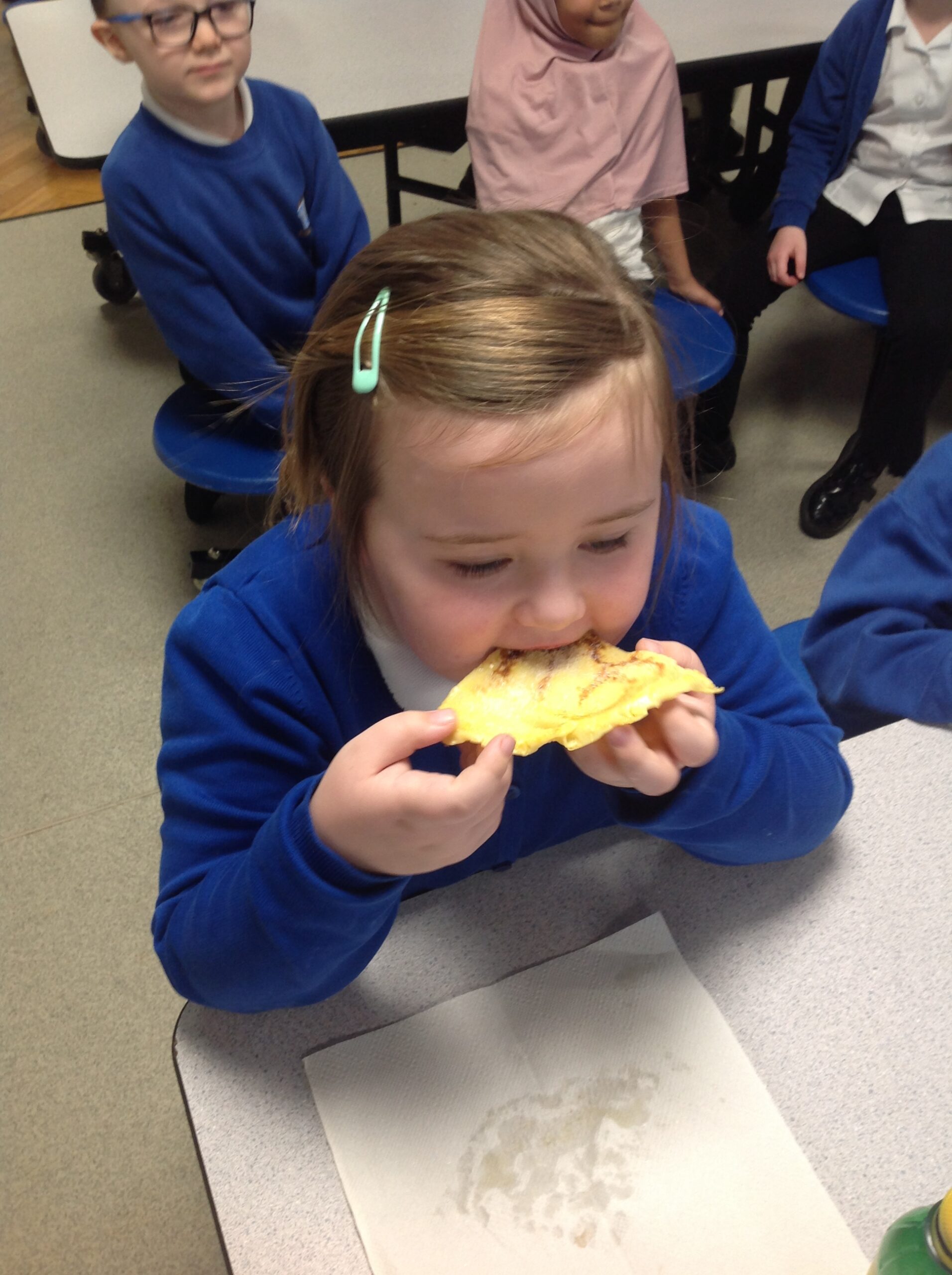Owls and Robins had a great time making pancakes. After reading ‘Mr Wolf’s Pancakes’ the children helped add flour, milk and eggs to a mixing bowl before whisking. They all loved tasting them after, choosing either plain pancakes or ones topped with lemon and sugar.