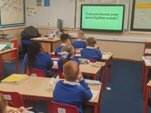 This week, we have been accessing Music Mentor and learning all about rhythm in LKS2. In particular, we have been focussing on the difference between rhythm and pulse. We played different games to find the pulse of a beat, explored different ways to learn rhythms and were even able to use rhyming words and syllables to invent our own rhythms!
