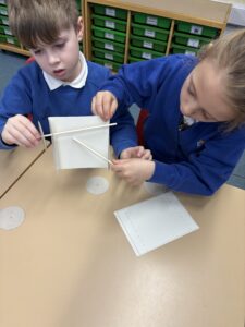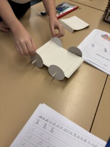 Once completed, the children tested how far their cars travelled and reflected on how successful their designs were. They discussed what worked well, what they would improve next time, and how different design choices affected performance.