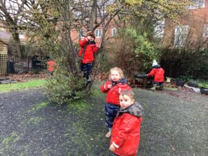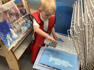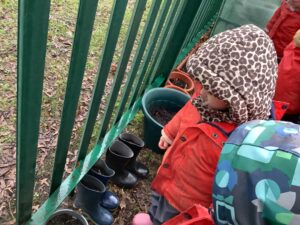 During maths time, we focused on exploring 2D shapes. Half of the children used a feely box to identify shapes using only their sense of touch, while the other half played a matching shape game. Both activities encouraged concentration, reasoning and shape recognition in fun, engaging ways. We also revisited rhyming words as part of our phonological development. Stories such as Oi Frog helped the children listen for and identify rhyming pairs, predict words and enjoy the playful language within the story. To end our week, we introduced our new children to our outdoor area and looked for new growth in our greenhouses. We discovered that our spinach plants have grown taller and our lupin seeds have grown into seedlings.