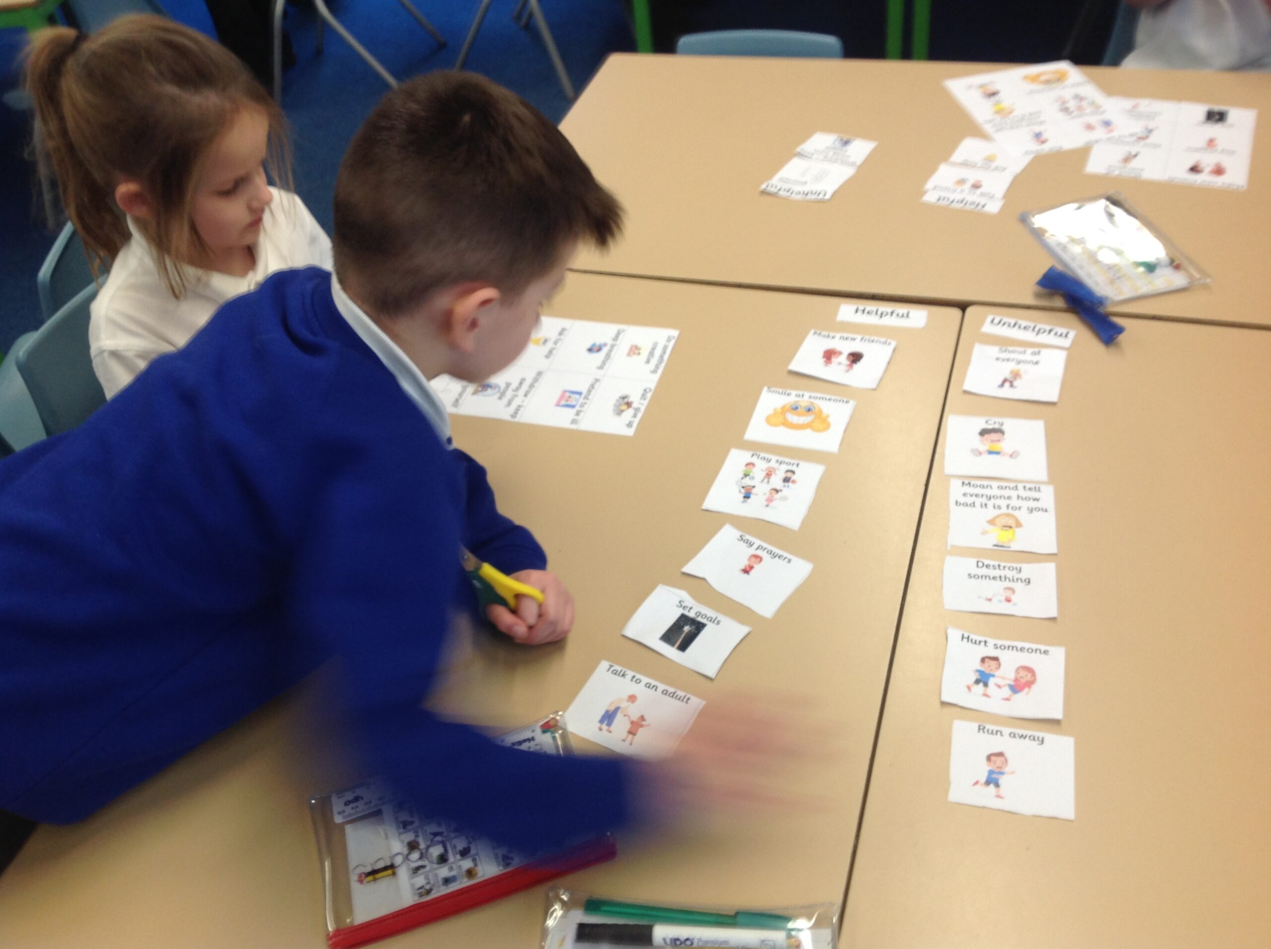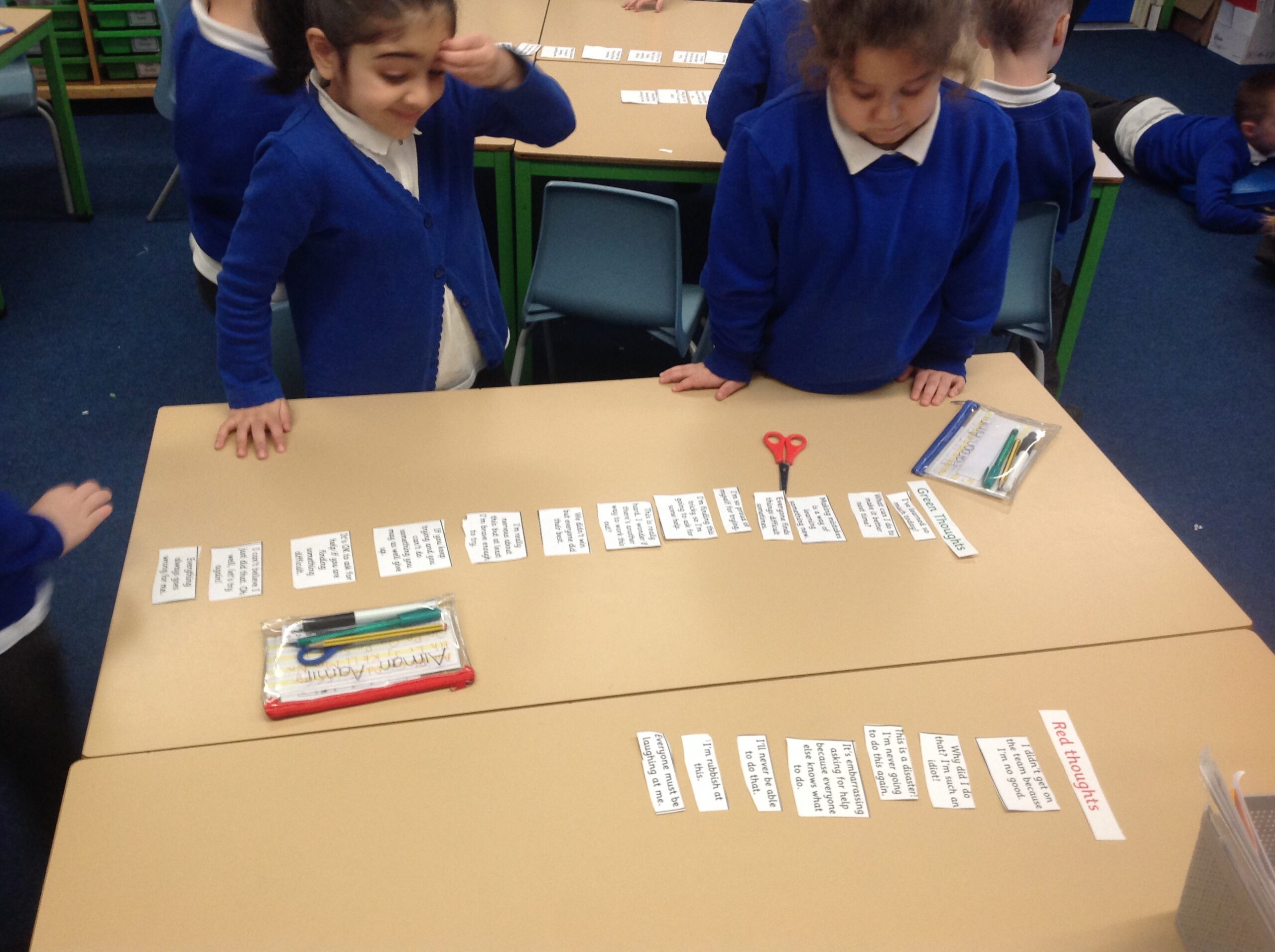 Over the last 2 weeks in PSHE, KS1 have been thinking about fight, flight, freeze. When we are worried or anxious, we react in one of these ways. We then sorted red and green thoughts and discussed why we put each card in that category.