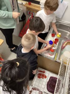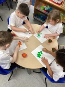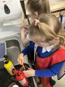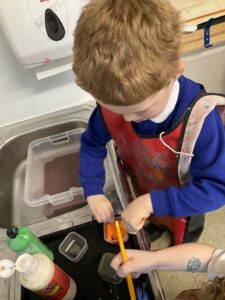 This week the children explored colour mixing and were often amazed by the surprising new colours they created. They made thoughtful predictions, tested ideas, and used vocabulary such as “lighter”, “darker”, and “shade”. We were especially proud of the independence they showed, choosing their own resources, trying out different combinations, and talking confidently about what they noticed. The children even washed up their mixing pots and brushes when they were finished. Their creativity and curiosity helped them deepen their understanding of how colours can change and blend. It has been amazing to watch their sense of discovery about colour throughout the week.