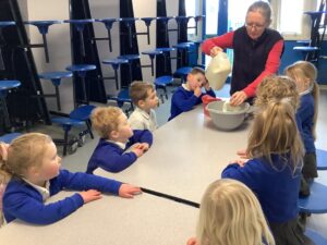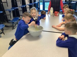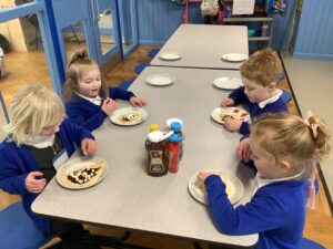 This week Reception have been exploring the traditions of Pancake Day and learning why families enjoy pancakes before Lent begins. The children helped make pancake batter, watched it cook, and talked about how ingredients change when heated. They were especially excited to choose and taste their favourite toppings and eat the pancakes at the pancake café!
