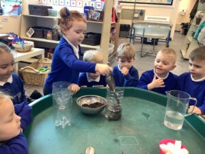 As a lead‑in to Science Week next week, we carried out an experiment to explore the question “Can we make dirty water clean?” The children made simple filters and compared their filtered water with the original, noticing what had changed.