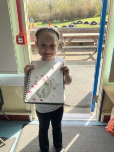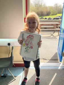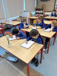 Next, the children practised observational drawing using real flowers, preparing for their final piece.